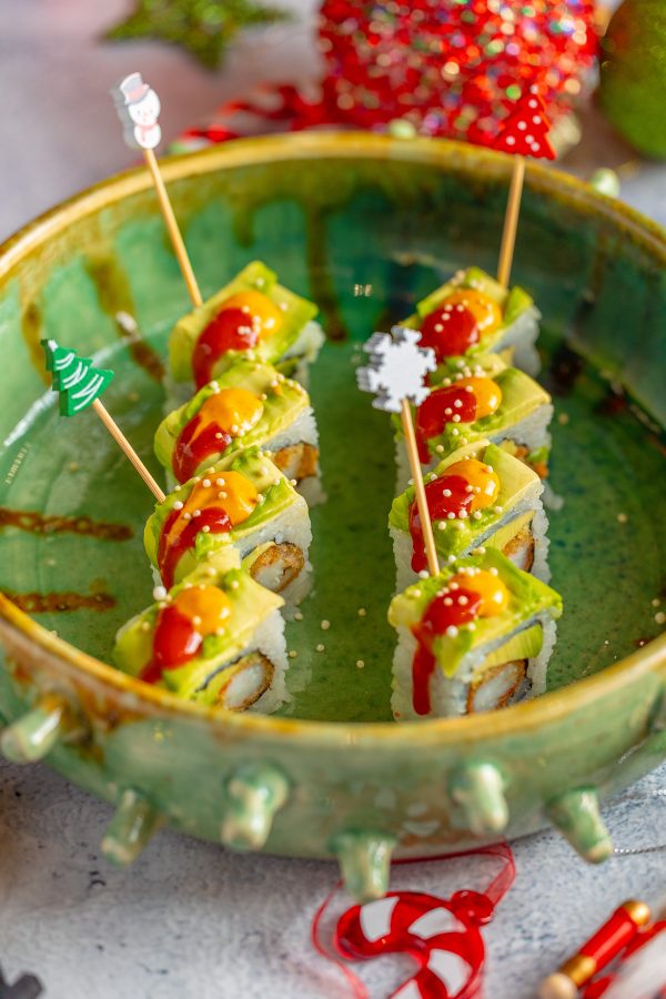 In : Crevette Tempura – Avocat – Guacamole / Out : Avocat – Bulldog Yuzu – Grinch Hot Sauce