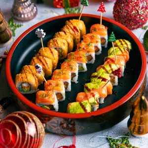 In : Crevette Tempura – Avocat – Guacamole / Out : Avocat – Bulldog Yuzu – Grinch Hot Sauce