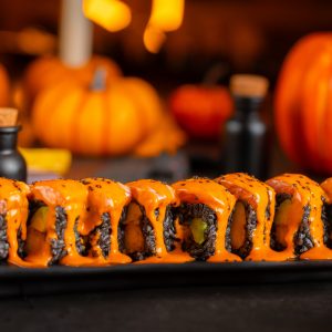 In : Saumon Tempura – Avocat – Fromage / Out : Saumon Épicé – Sauce Bulldog